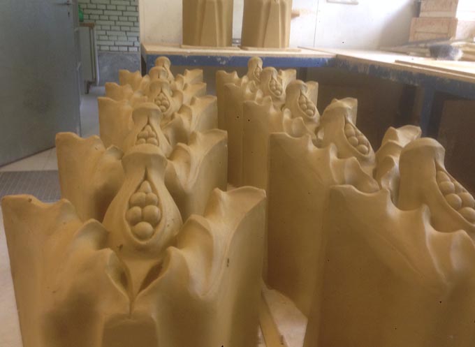 Die Formgebung der einzelnen Ziegel richtet sich nach den Vorgaben der jeweiligen Bauvorhaben. Um Ziegel für die Vielzahl an Kirchen, Burgen, Schlössern und Bürgerhäusern herzustellen, verwenden wir auch heute noch das traditionelle Wasserstrich- Handformverfahren in Holzformen. Nur dadurch ist es gewährleistet, sowohl die Optik als auch die physikalischen Eigenschaften des Originals nachzuempfinden. Stranggezogene Ziegel, die zu Beginn der Industrialisierung, Ende des 19ten Jahrhunderts entstanden sind, werden von uns heute ebenfalls im Strangpress-Verfahren nachgefertigt. Der Bereich der Baukeramik wird von uns durch Fertigung in Gipsformen abgedeckt. Dadurch ist man in der Lage sehr filigrane Stücke herzustellen.